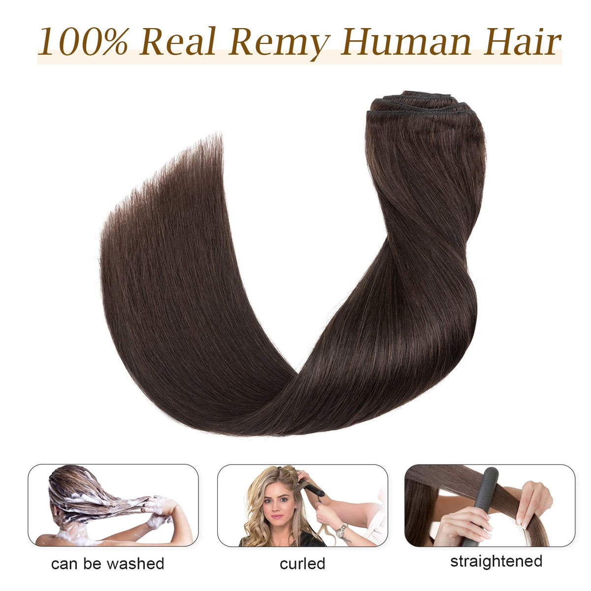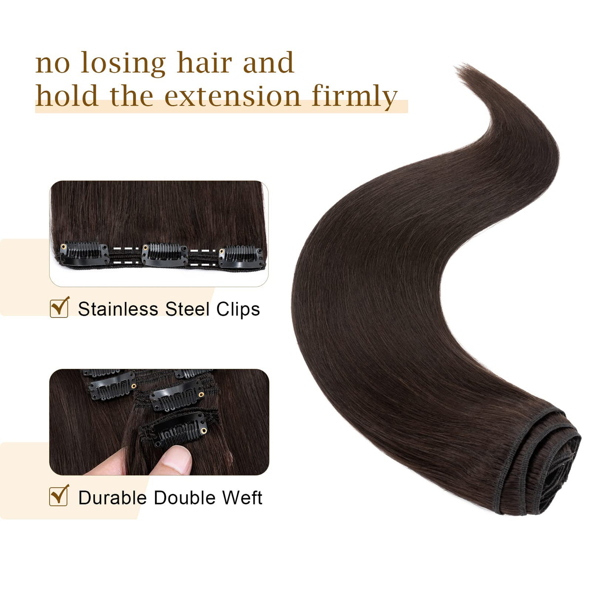 10 / 10 inch Double Weft 100% Remy Human Hair Clip in Extensions Grade 7A Quality Full Head Thick Thickened Short Soft Silky Straight 8pcs 18clips for Women Beauty 110g #2 Dark Brown