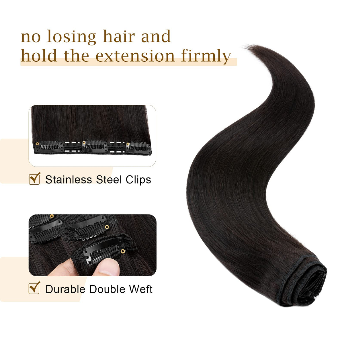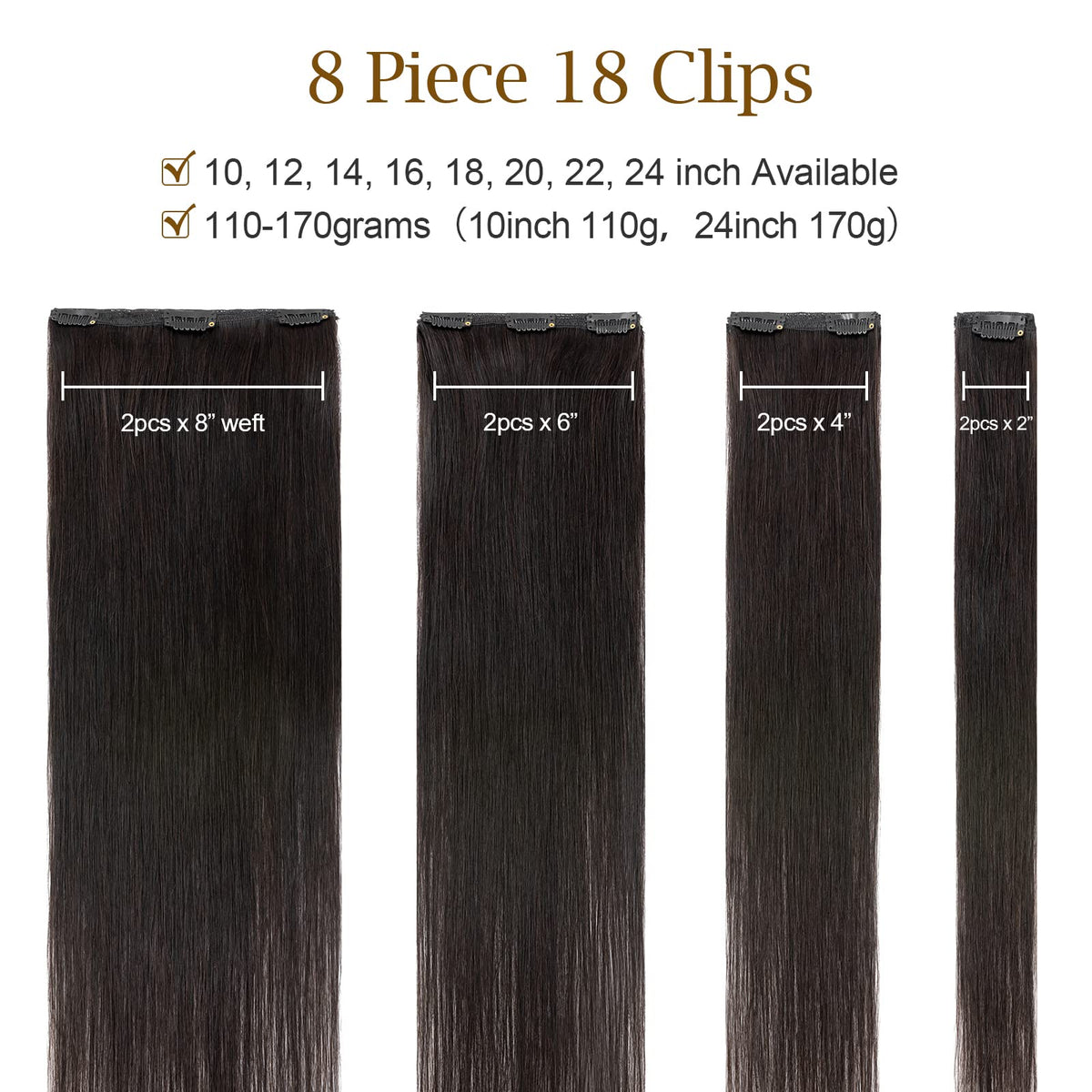 Double Weft 100% Remy Human Hair Clip in Extensions 10''-22'' Grade 7A Quality Full Head Thick Long Soft Silky Straight 8pcs 18clips for Women Beauty (14 / 14 inch 120g ,#1B Natural Black)