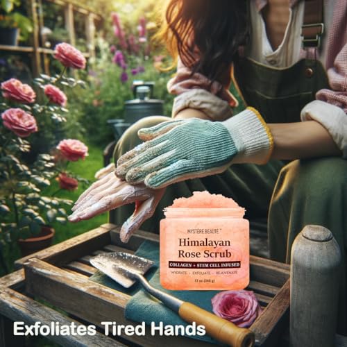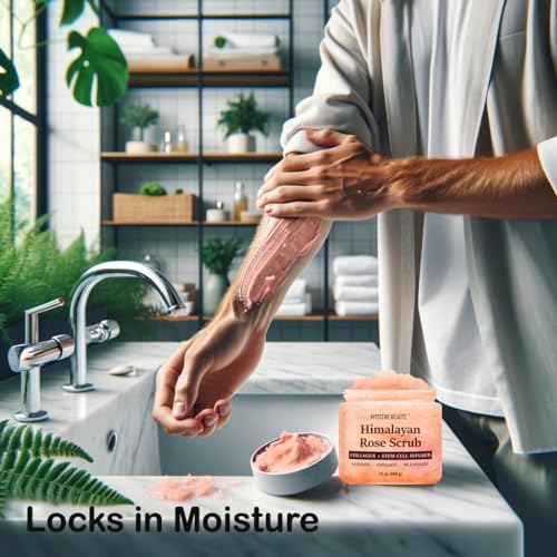 MYSTÉRE BEAUTÉ Himalayan Salt Body Scrub 12 oz - with Collagen and Stem Cells - Exfoliating Salt Scrub for Cellulite - Deep Cleansing for Acne, Scars, Wrinkles - Moisturizes Skin