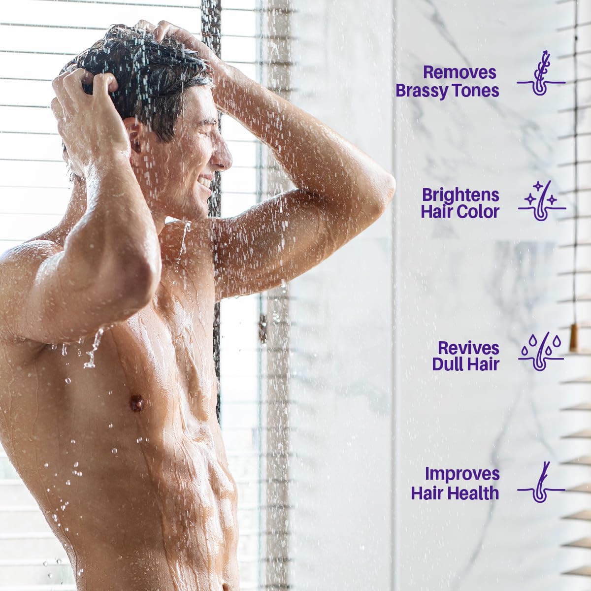 - Achieve and maintain vibrant, healthy hair with our highly rated purple shampoo for blondes and brunettes. Combat brassiness and yellow tones with our anti-yellow purple shampoo, specially formulated for highlighted and platinum blonde hair. The purple toning shampoo and conditioner set, enriched with ingredients like green tea leaf extract, orange extract, and hydrolyzed silk, ensures your blonde or gray hair remains luminous and bright.