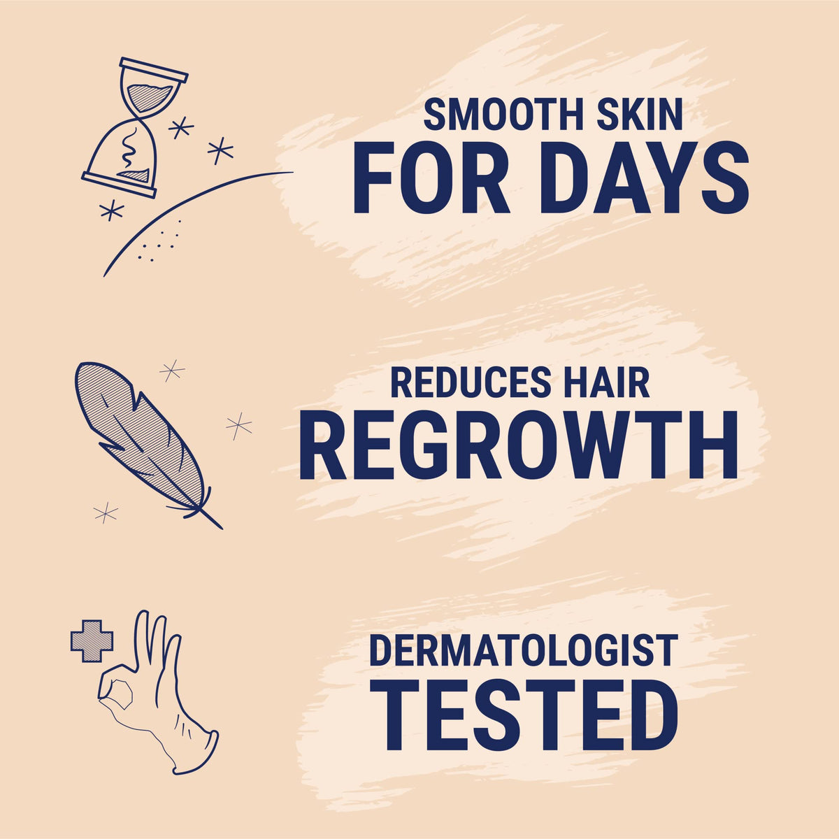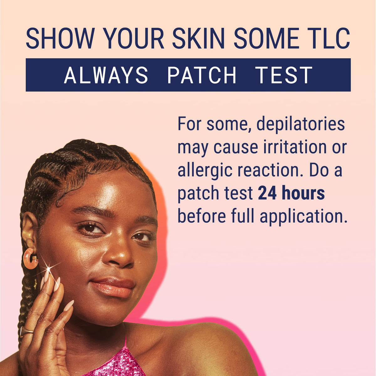 Directions :: Smooth on a thick, even layer to cover hair.Wash your hands immediately after applying.Leave cream on for 5 minutes. Check a small area for hair removal. If your hair is thick, you may need more time.Don’t leave on longer than 10 minutes.Gently wipe off the cream and hair with a damp washcloth. Don’t rub!Once all hair has been removed, rinse skin thoroughly with lukewarm water.Pat dry, and you’re good to go!