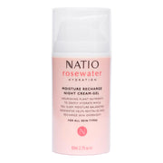 Natio Australia Rosewater Hydration Moisture Recharge Night Cream-Gel is a luxurious face moisturizer enriched with Shea Butter, designed to rejuvenate and hydrate all skin types while you sleep.
