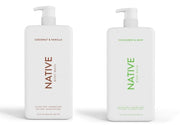 Experience the goodness of Native Body Wash with Coconut & Vanilla, Cucumber & Mint. Each pack includes 2 luxurious 36 oz bottles with convenient pumps for an enjoyable shower experience.