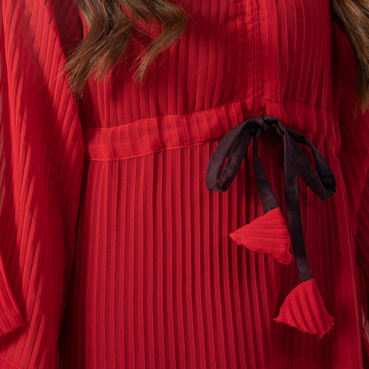 Step into effortless elegance with our charming V-neck dress, designed to capture attention with its delightful tassel detail and striking red color. This versatile piece exudes feminine charm and sophistication, making it perfect for a variety of occasions. The flattering V-neckline enhances your silhouette, while the playful tassel detail adds a stylish touch that elevates the overall look. Crafted from lightweight, breathable polyester-blended fabric, this dress ensures comfort and ease of movement, keeping you feeling relaxed and confident all day long. Picture yourself pairing this dress with sandals for a casual daytime outing or dressing it up with heels to make a statement at a special event. Its timeless appeal and chic design offer endless styling possibilities, making it an essential addition to any fashion-forward wardrobe. Add this must-have V-neck dress to your collection today and embrace the perfect combination of style, comfort, and sophistication.