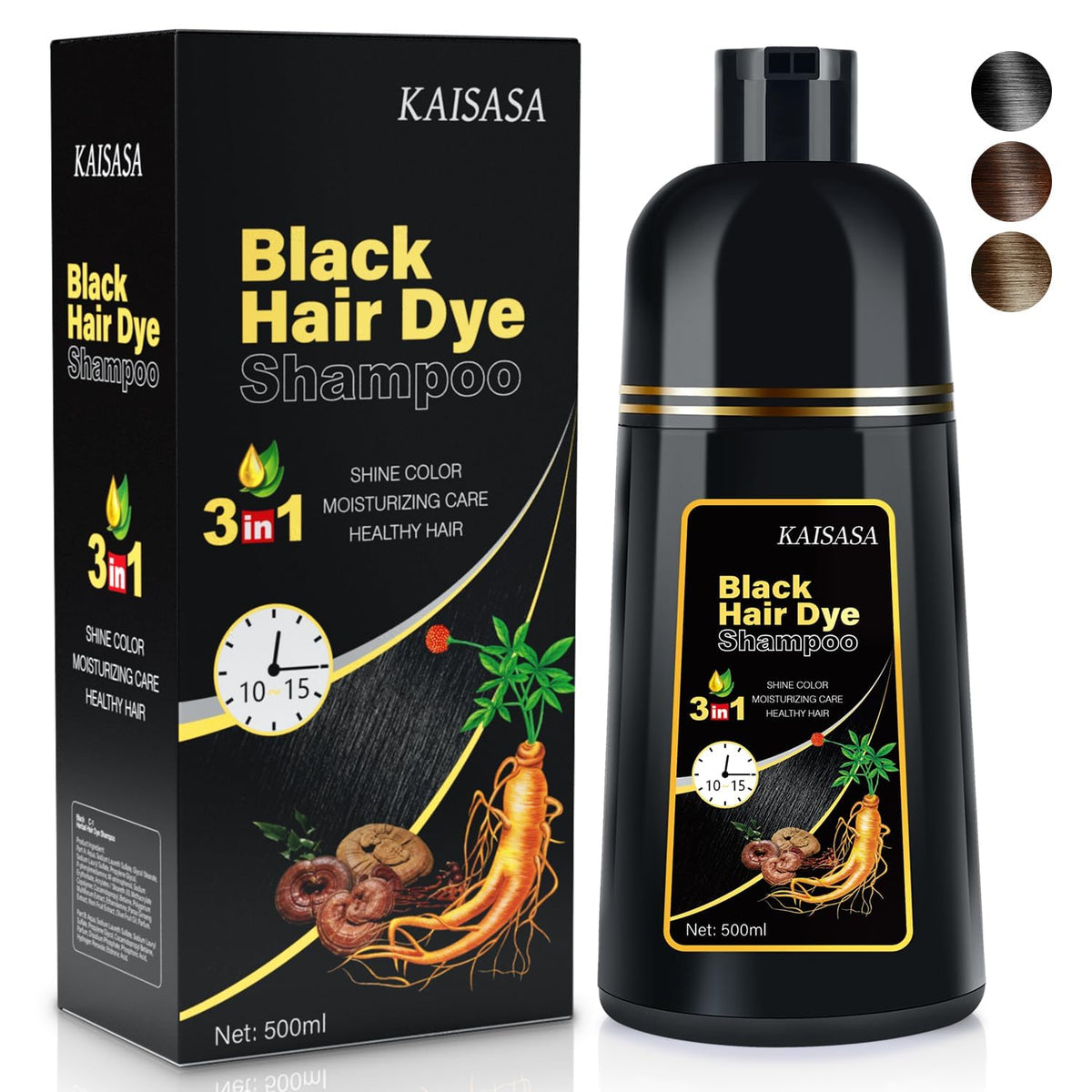Natural Black Hair Dye Shampoo Instant & Easy 3-in-1 Hair Color Solution for Men and Women - Herbal Formula, Ammonia-free, Lasts 30 Days - 16.90 oz