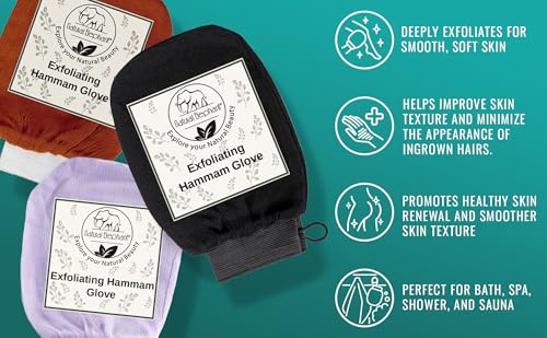 Natural Elephant Exfoliating Hammam Glove is a face and body exfoliator mitt in a pack of 3. The burnt orange color adds vibrancy to your exfoliation routine, leaving your skin smooth and rejuvenated.