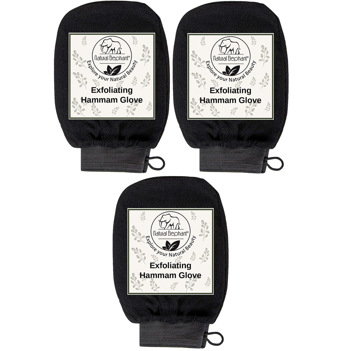 Natural Elephant Exfoliating Hammam Glove - Face and Body Exfoliator Mitt (Pure Black (Pack of 3))