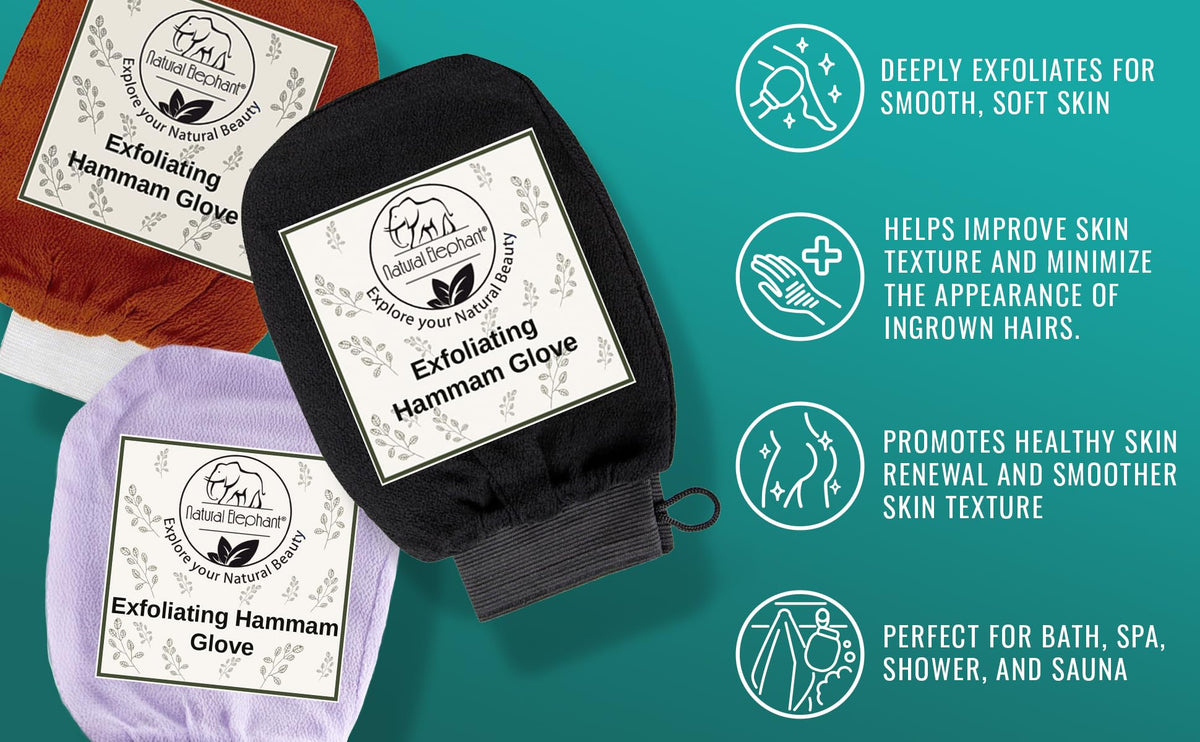 Revitalize your skin with the Natural Elephant Exfoliating Hammam Glove in Burnt Orange. This exfoliator mitt gently buffs away dead skin cells, revealing smoother and softer skin for a rejuvenated and radiant complexion.