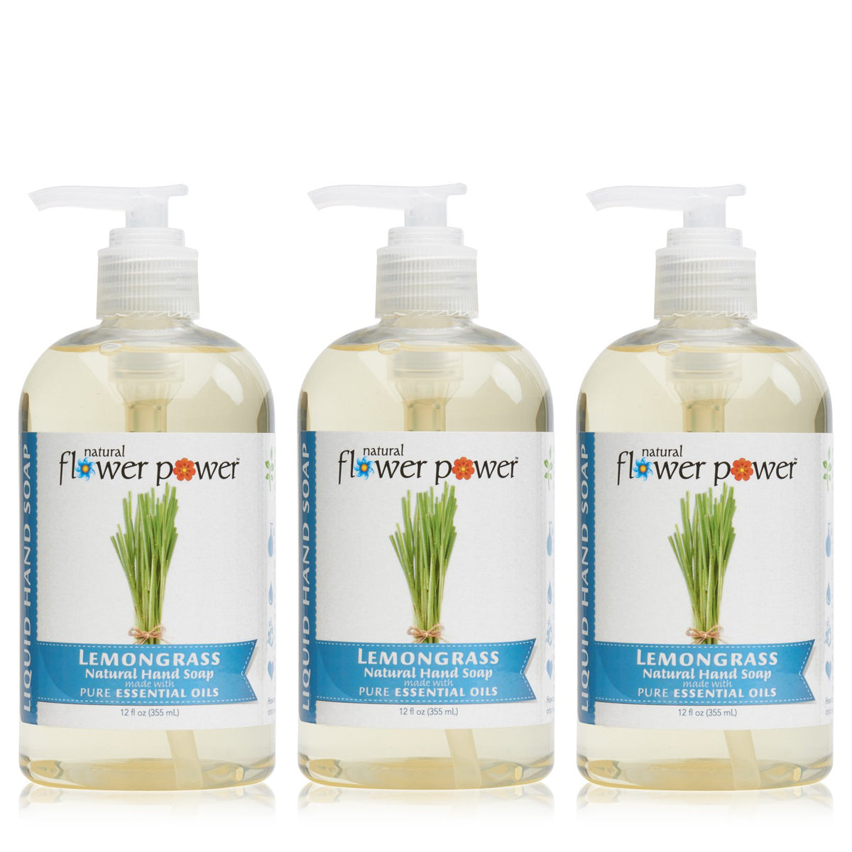 Natural Flower Power - Natural Liquid Hand Soap, Lemongrass, pH Balanced, Scented with Pure Essential Oils, Soft and Moisturizing, Sulfate Free - 12 Ounce (Pack of 3)