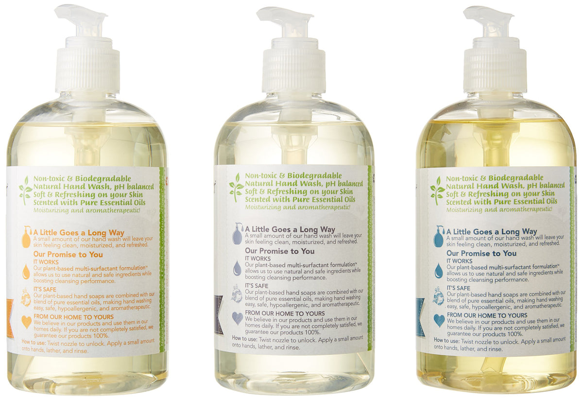 Ingredients :: Natural Non-Toxic Biodegradable Variety Pack Citrus & Spice Lemongrass Lavender Liquid Hand Soap Wash