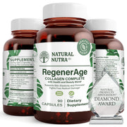 Natural Nutra RegenerAge Complete Supplement for Skin Health with Protein Peptides, Reduce Stretch Marks, Contributes Overall Health, Vitamin C, Grape Seed Red Wine Extract, Gluten Free, 90 Capsules.