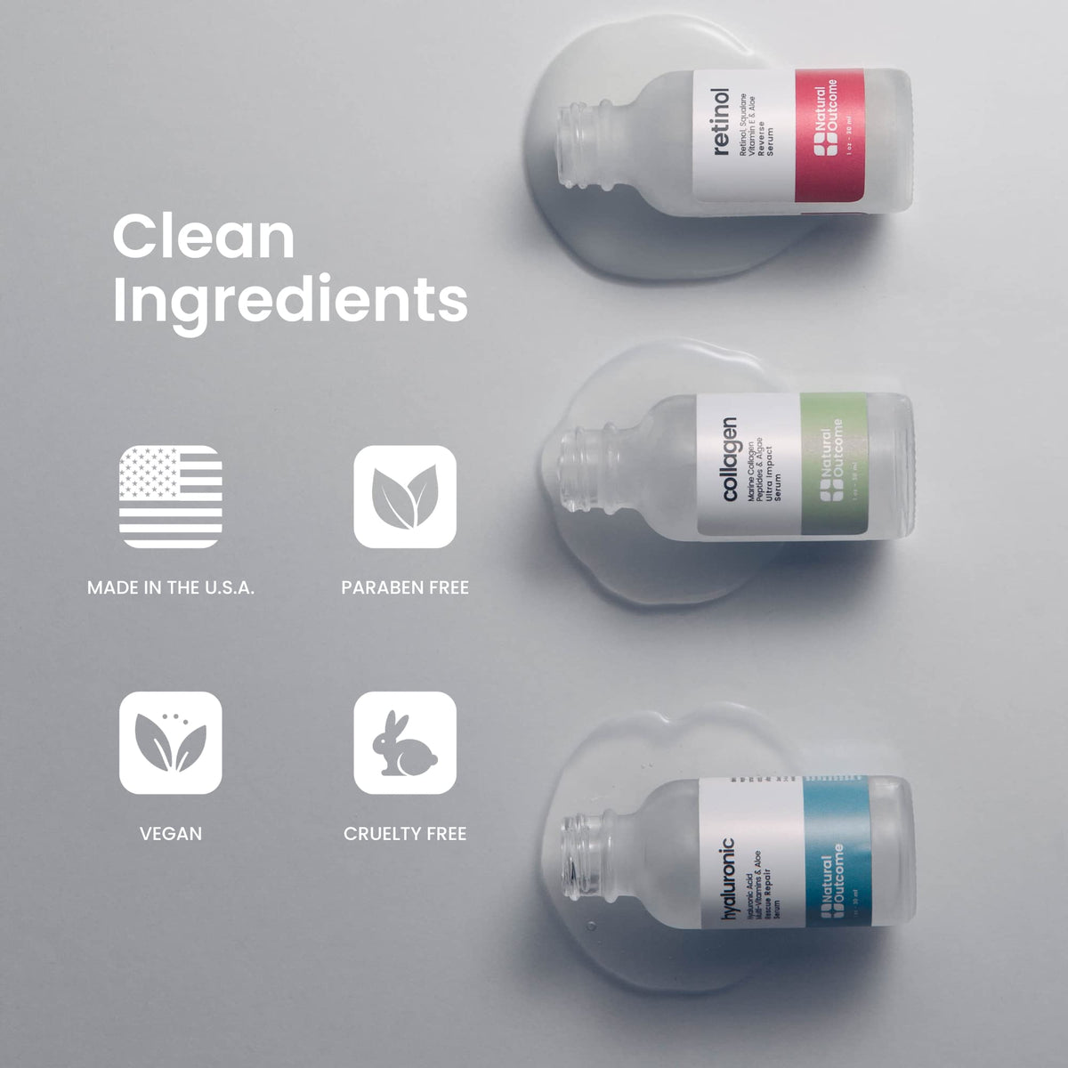 Natural Outcome Hydrating Hyaluronic Acid Serum and Retinol Facial Serum - Night and Day Anti Aging Facial Serum Set 1 oz Each, Vegan, Cruelty Free & Fragrance Free