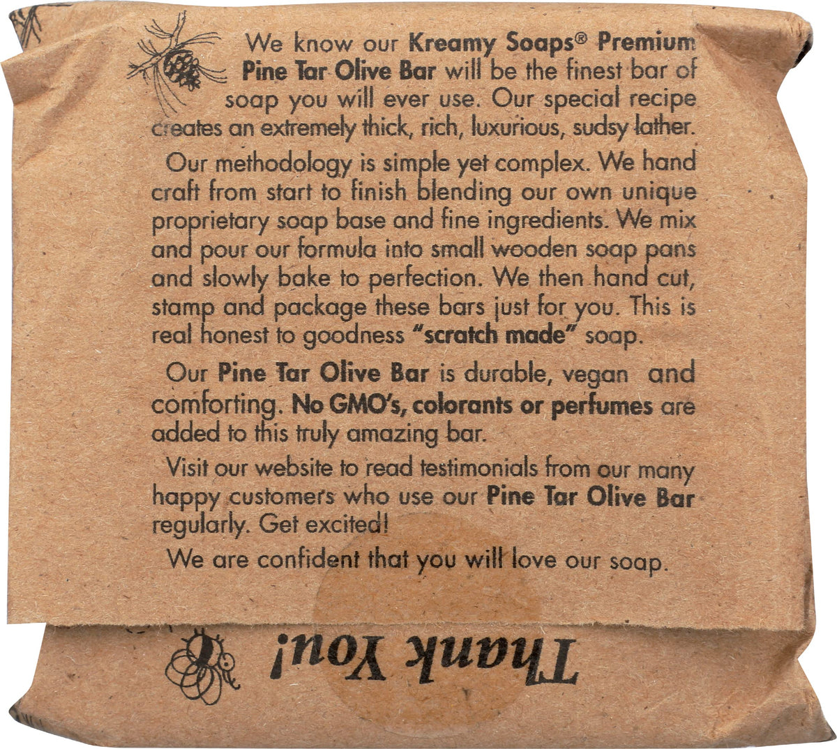 Ingredients: Saponified Palm Oil, Coconut Oil, Olive Oil, Jojoba Bean Oil, And Pine Tar.