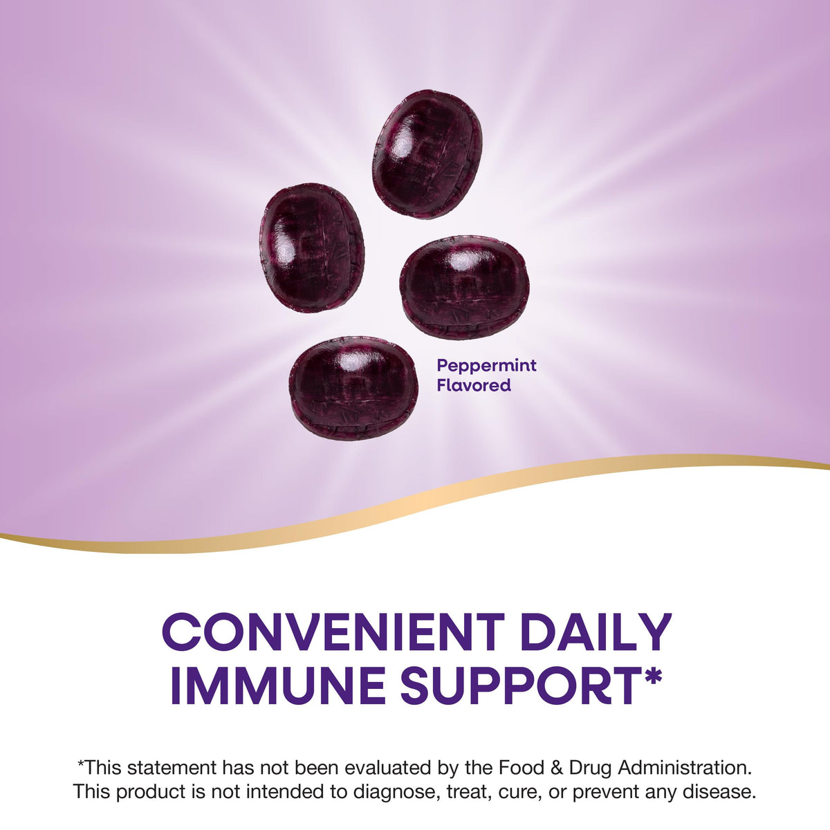 Each package includes elderberry and mint flavored lozenges, sweetened with organic ingredients.