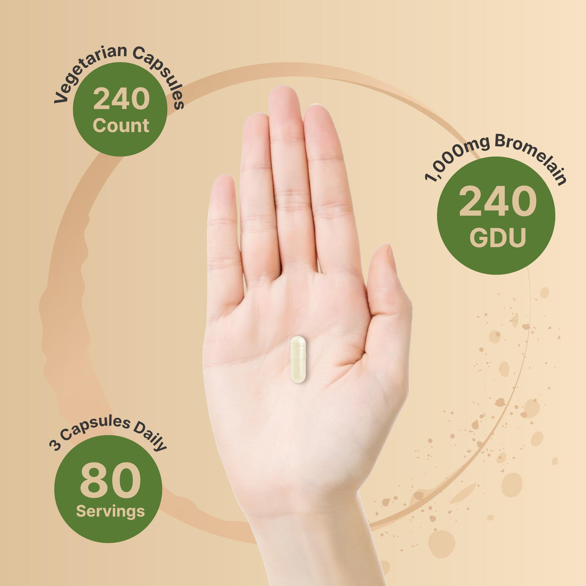NatureBell Bromelain, 1,000mg Per Serving, 240 Veggie Capsules | 2,400 GDU – Digestive Enzymes & Joint Support Supplement – Proteolytic Enzymes for Digestion, Fresh Pineapple Source – Non-GMO