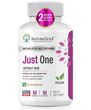 NatureGenX Just One Daily Methylated Multivitamin - 60 Caps Pure Methyl B12, Methylfolate MTHFR Support Supplement Iron Free Methylated Vitamins for Men & Women 2 Months Supply Gluten Free
