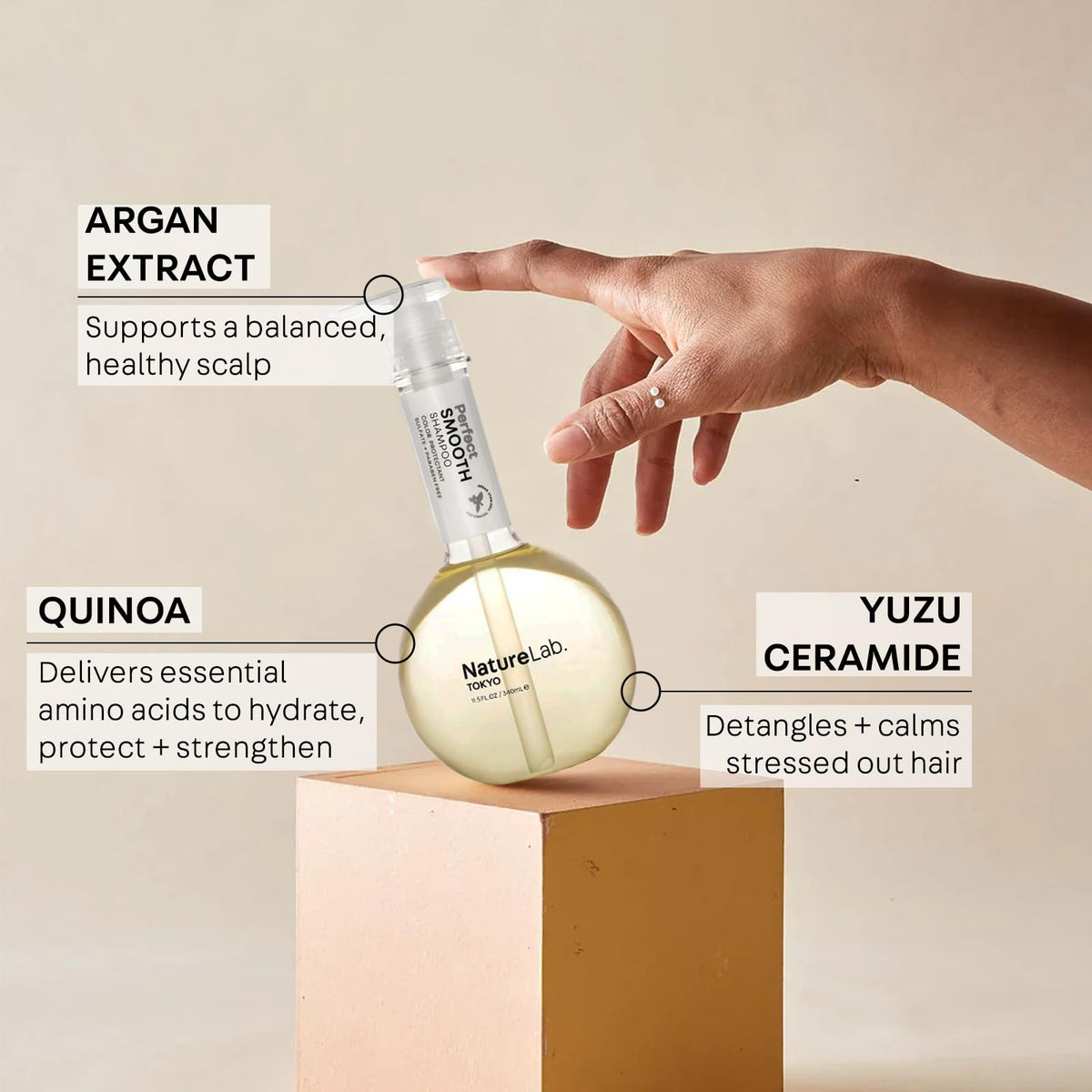 NatureLab Perfect Smooth Hair Shampoo - Moisturizing Shampoo for Dry + Frizzy Hair with Argan, Baobab, Marula Stem Cells + Yuzu Ceramide - Cruelty, Sulfate-Free Shampoo (11.5 fl oz/340 ml)