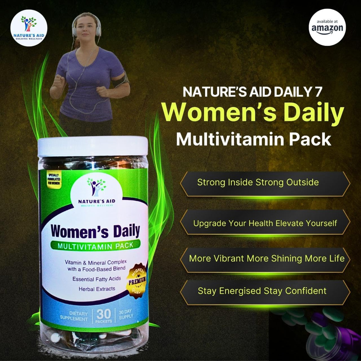 Nature's Aid Holistic Wellness Women's 7 Daily Multivitamin Pack, 30 Packets, Vitamin & Mineral Complex with Food-Based Blend, Essential Fatty Acids, Herbal Extracts