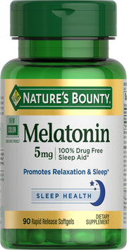 Nature's Bounty Melatonin, 100% Drug Free Sleep Aid, Dietary Supplement, Promotes Relaxation and Sleep Health, 5mg, 90 Softgels (Pack of 1)