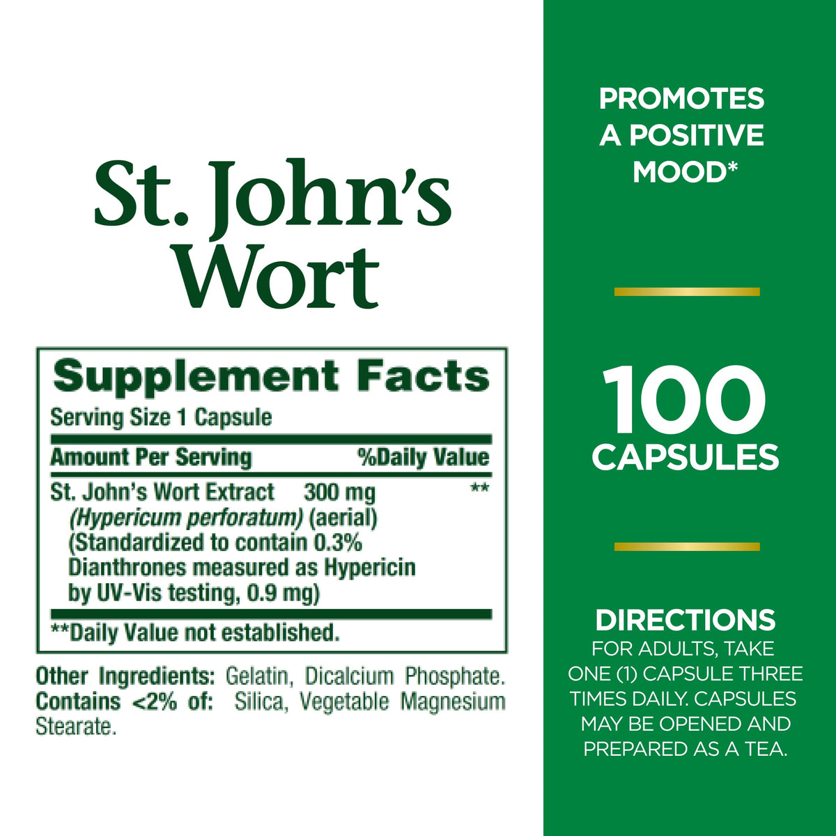 Nature's Bounty St. John’s Wort 300mg Capsules, Herbal Health Supplement, Promotes a Positive Mood, 100 Capsules