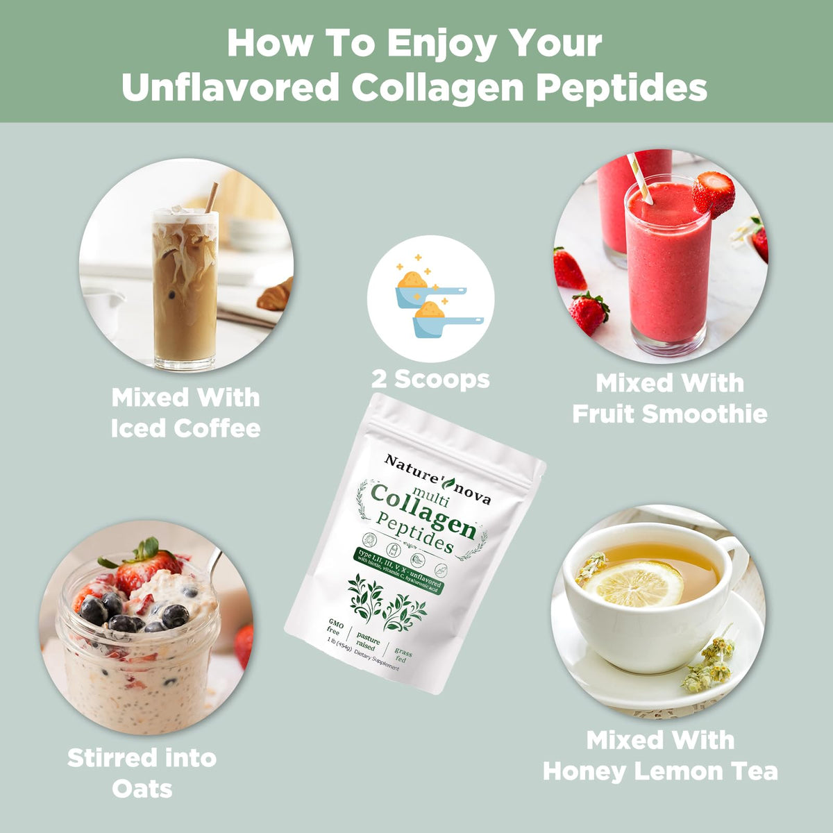 Nature's Nova Multi Collagen Peptides Powder - Type I,II,III,V,X with Biotin, Hyaluronic Acid, Vitamin C - Unflavored, Easily Dissolved, Non-GMO
