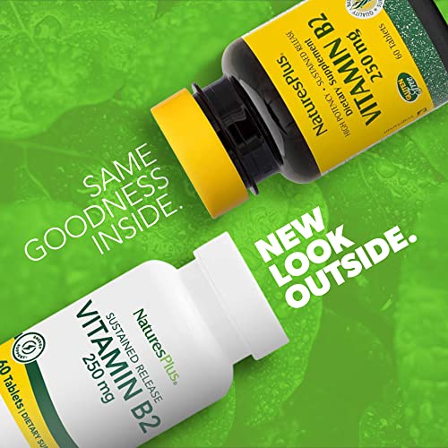 Natures Plus Vitamin B2 (Riboflavin) - 250 mg, 60 Vegetarian Tablets, Sustained Release - Natural Energy & Metabolism Booster, Promotes Overall Health - Gluten-Free - 60 Servings