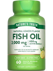 Nature's Truth Fish Oil 2000mg softgels provide a potent source of EPA and DHA Omega-3 fatty acids with a refreshing natural lemon flavor. This non-GMO and gluten-free supplement supports heart, brain, and overall health.