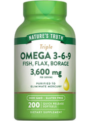 Experience the power of Omega 3, 6, 9 with Nature's Truth Triple Omega softgels. Enjoy the benefits of fish, flax, and borage oils in 200 gluten-free softgels.