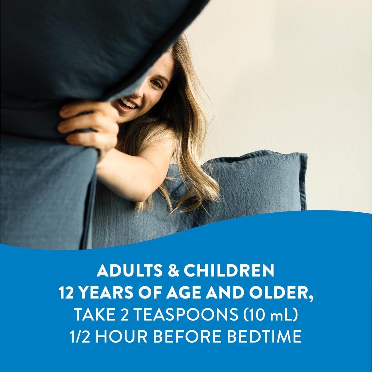 Shake well before use. For adults & children 12 years and older: Take 2 teaspoons (10 mL) 1/2 hour before bedtime. Repeat dose if necessary. Consult a physician for children under 12.