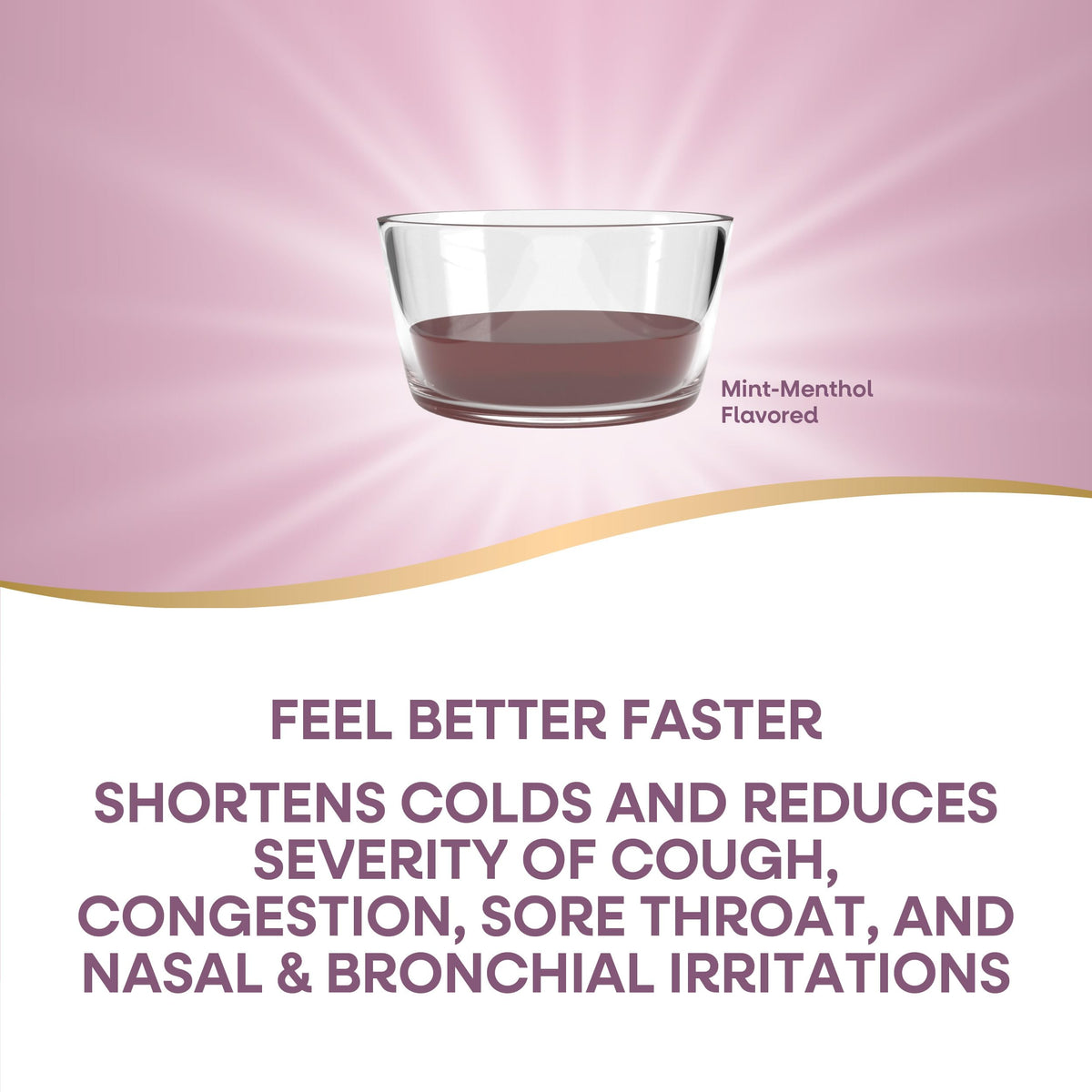 Directions :: For best results, use at the first sign of symptoms; continue to use for an additional 48 hours after symptoms cease; shake well before each use; use only with enclosed dosage cup; adults and children 13 years of age and older: take 1 1/2 teaspoons (tsp) (7.5 mL) three times daily; children under 13 years of age: consult a physician before use