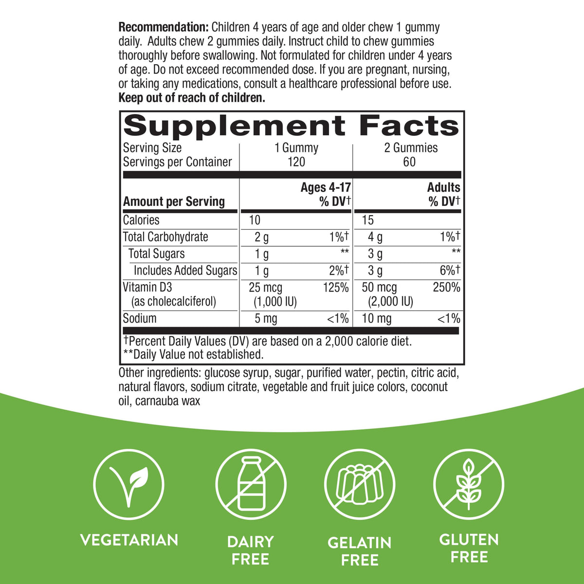 Nature's Way Vitamin D3 Gummies, Supports Immune and Bone Health*, 2000 IU (50 mcg) per 2-Gummy Serving, Mixed Fruit Flavored, 120 Gummies (Set of 2)