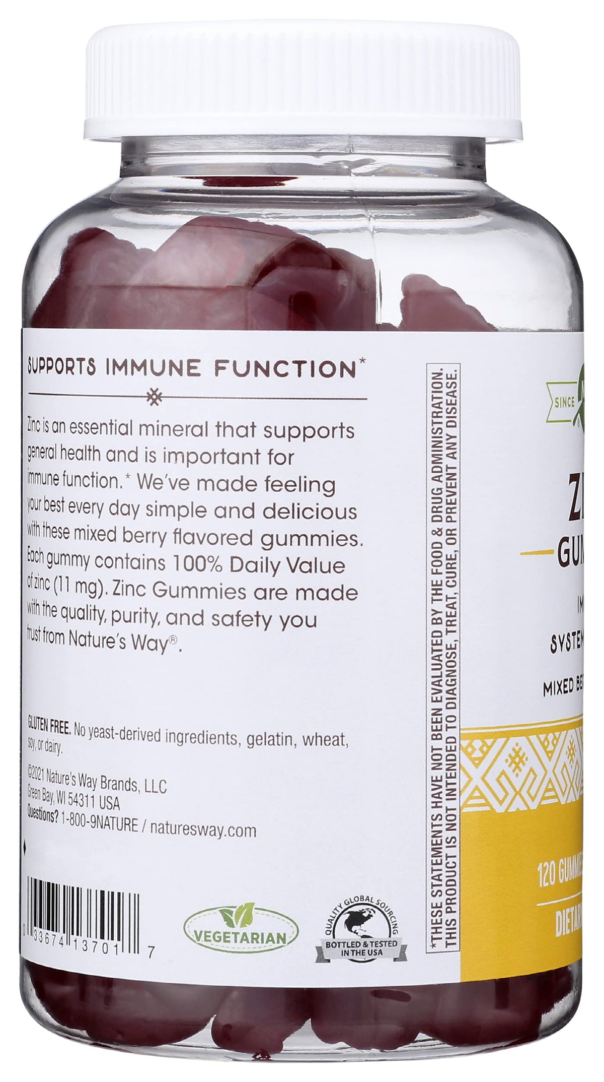 Nature's Way Zinc Gummies, Cruelty Free, Environmentally Friendly, 120 Gummies (Pack of 1)