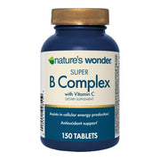 Nature's Wonder Super B Complex with Vitamin C offers a comprehensive blend for energy metabolism and immune function. With essential vitamins and minerals, this 150-tablet pack supports overall health and vitality.