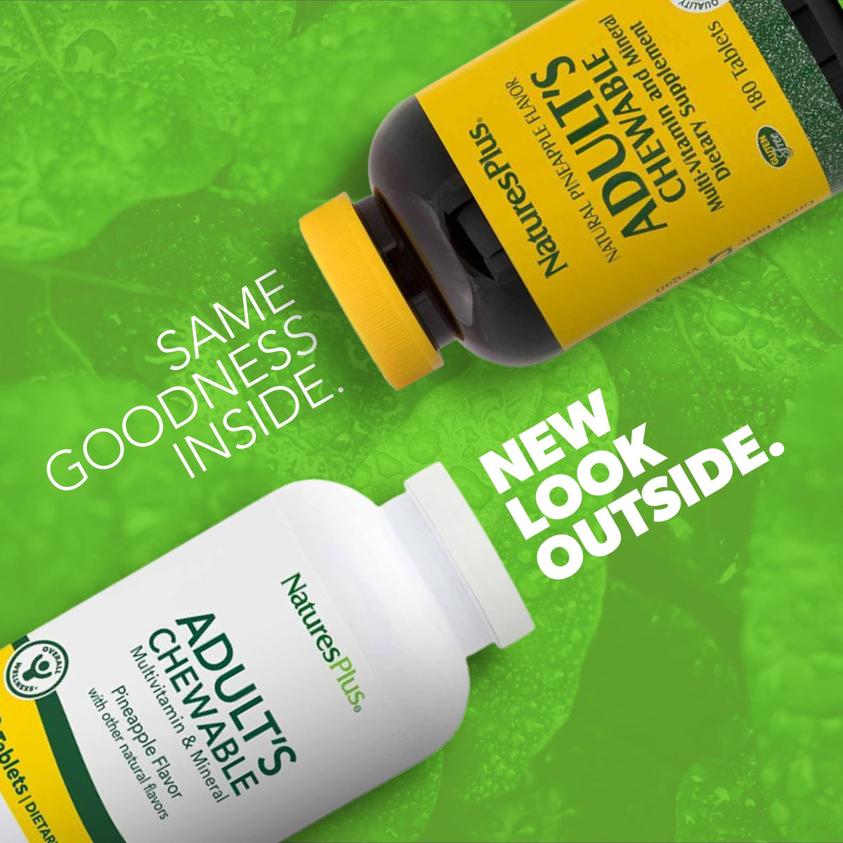 NaturesPlus Adult's Chewable Multivitamin - 180 Vegetarian Tablets - Pineapple Flavor - Natural Whole Foods Supplement for Overall Health, Energy - Gluten-Free - 180 Servings