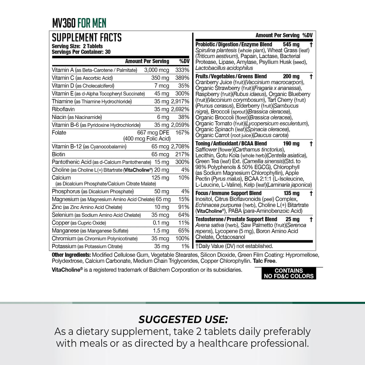 NDS Nutrition MV360 For Men, 5-in-1 Complete Multivitamin for Men with Essential Mens Vitamins for Energy, Digestion, Toning, Immune Support, and Mens Health & Vitality, 60 Tablets, 30 Servings