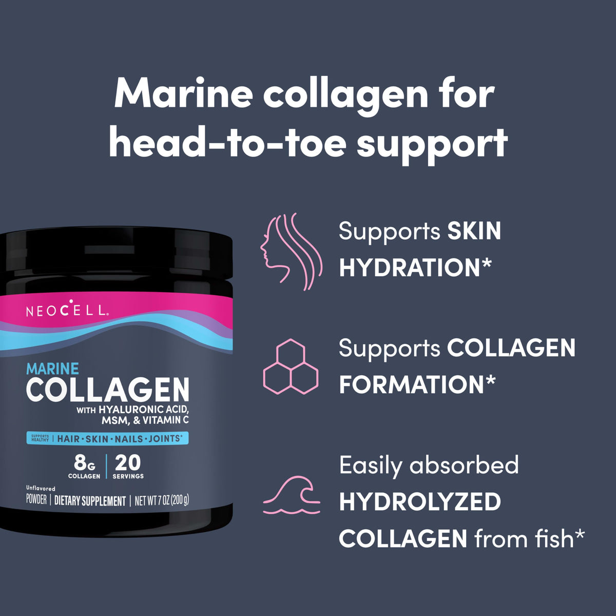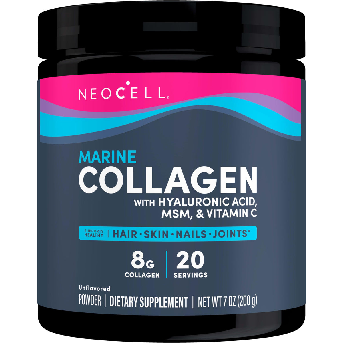 Neocell Marine Collagen with Hyaluronic Acid, MSM and Vitamin C, Keto Collagen Supplements, for Skin Care and Joint Health, Unflavored, Powder, 7 oz, 1 Canister
