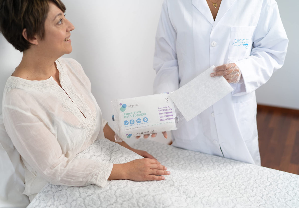 Neosanit Soap Infused Bath Sponge Rinse Free offers a convenient bathing solution for adults. These shower wipes are dermatologically tested and hypoallergenic, providing a gentle and effective cleansing experience. Ideal for individuals looking for a no-rinse bathing option with added skin care benefits.