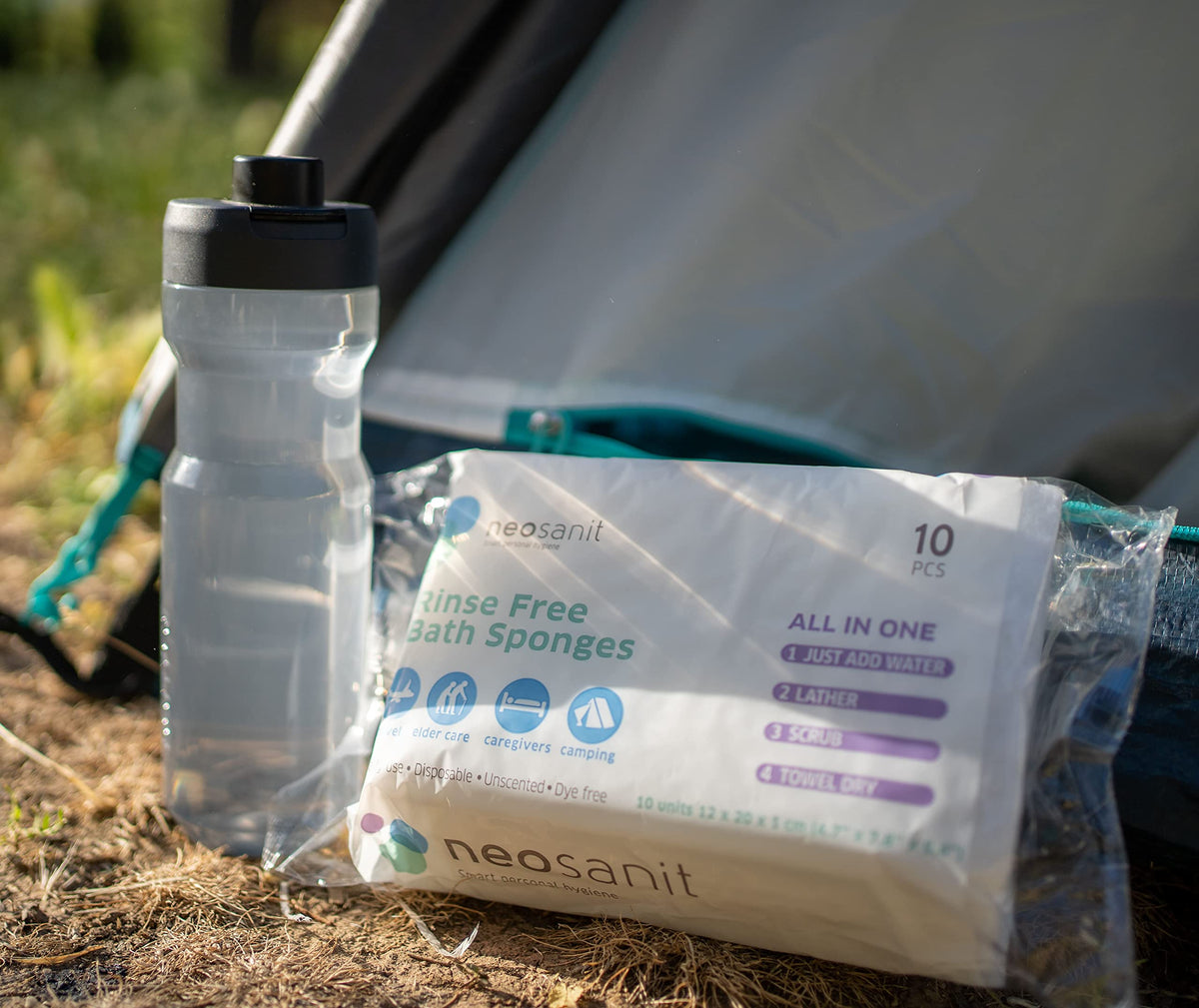 Neosanit Soap Infused Bath Sponge Rinse Free. Shower Wipes for Adults No Rinse. Bath Sponges with Dermatologic and Hypoallergenic Soap.Medical Supplies for Bathing All in One. Single Use-Pack 10 Units