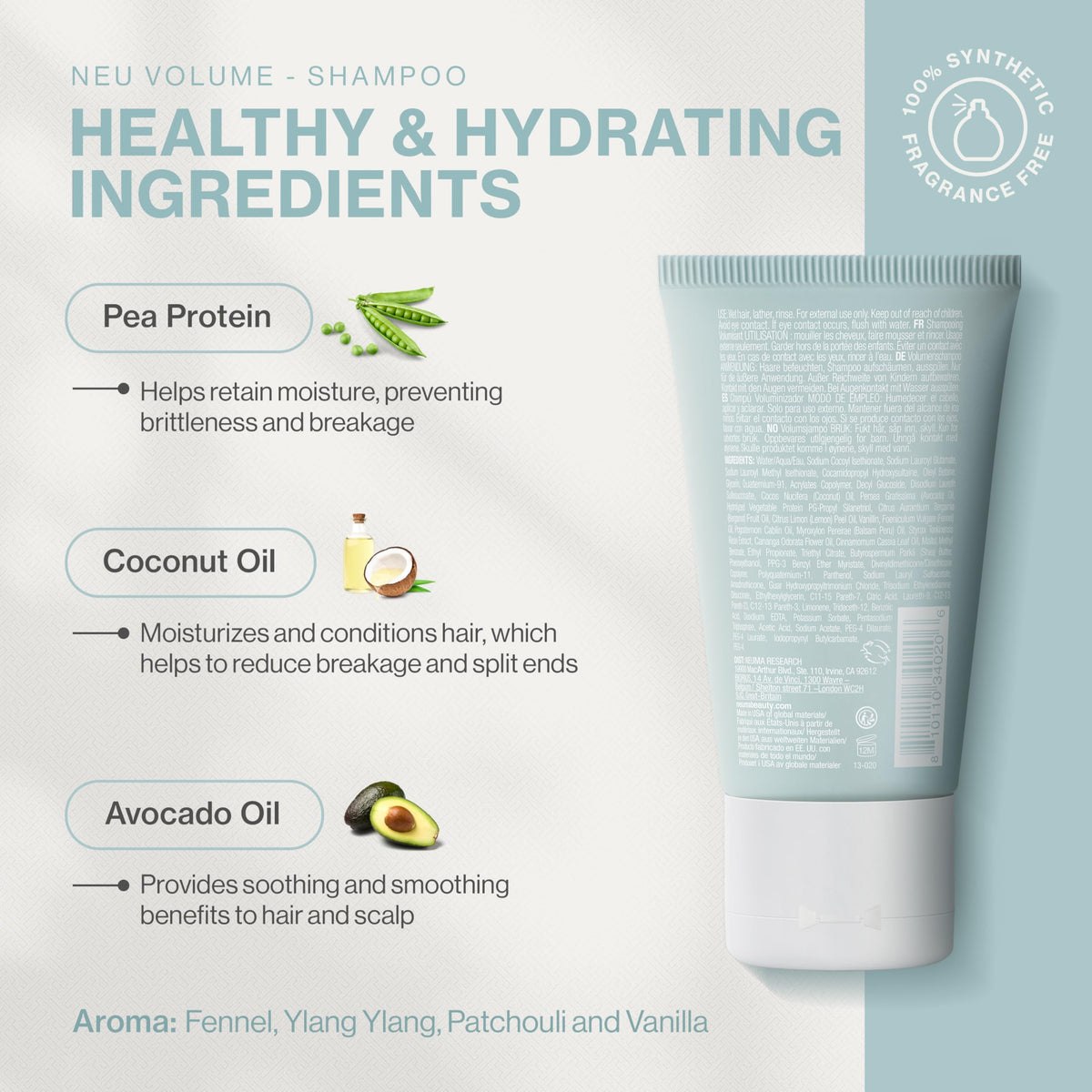 NEUMA Neu Volume Shampoo 1 Fl. Oz. Fennel, Ylang Ylang, Patchouli, and Vanilla Scent, Travel Size Sulfate Free Shampoo