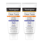 Neutrogena Clear Face Sunscreen Lotion for Acne-Prone Skin, Broad Spectrum SPF 50 Facial Sunscreen for Oily Skin, Oil-, Fragrance- & Oxybenzone-Free Water Resistant Sunscreen, Twin Pack, 2 x 3 fl. oz