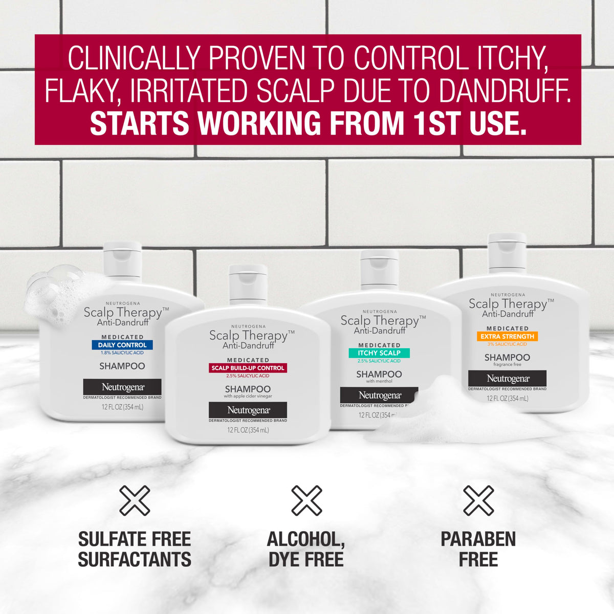 Neutrogena Scalp Therapy Anti-Dandruff Shampoo for Scalp Build-up Control, 2.5% salicylic acid, with Apple Cider Vinegar Fragrance, 12 fl oz