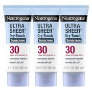 Neutrogena Ultra Sheer Dry-Touch Sunscreen for Face & Body, Helioplex SPF 30 Broad Spectrum UVA/UVB, Lightweight, Water Resistant & Non-Greasy, Hawaii Act 104 compliant, Travel Size 3 fl oz, Pack of 3