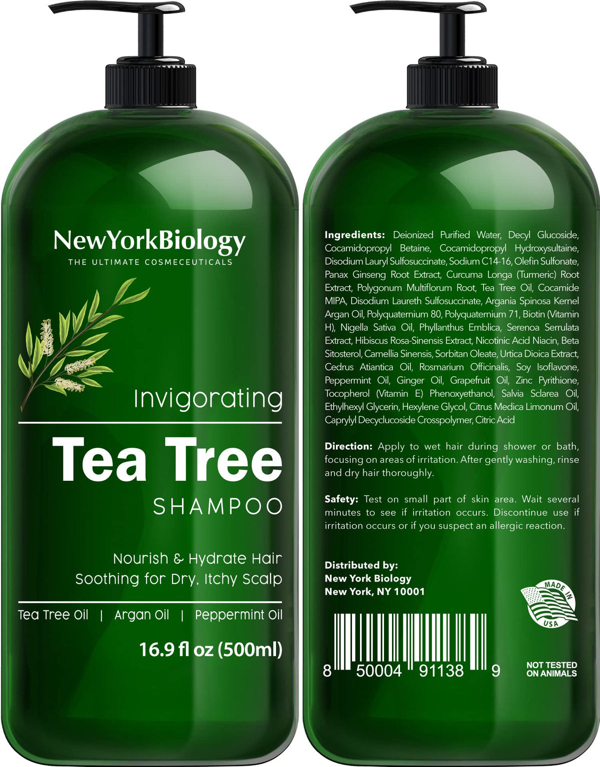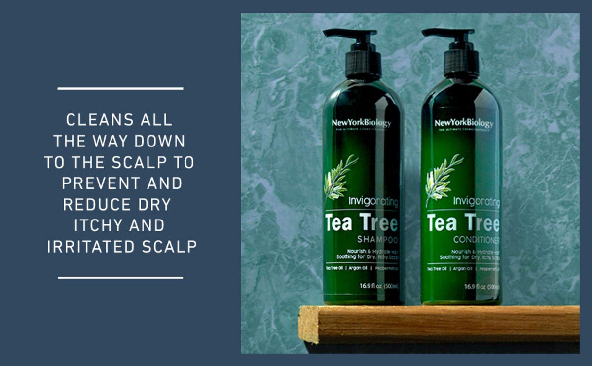 New York Biology Tea Tree Shampoo and Conditioner Set - Deep Cleanser - Relief for Dandruff and Dry Itchy Scalp - Therapeutic Grade - Helps Promote Hair Growth - 16.9 Fl Oz