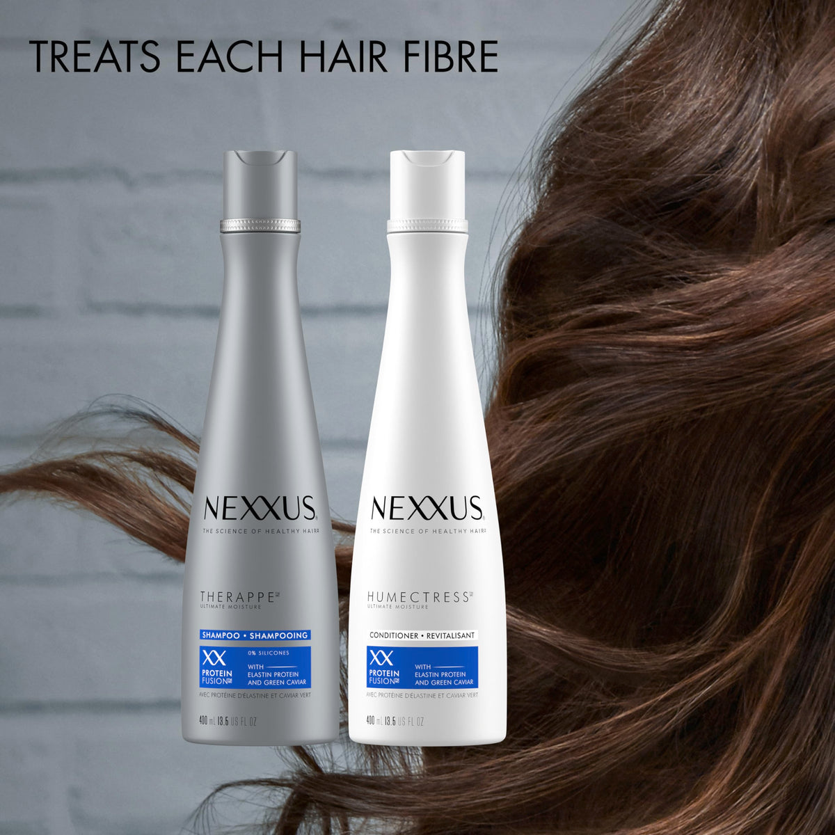 1. Wash your hair with Nexxus Therappe Shampoo just apply the hydrating shampoo to wet hair and experience the rich lather before rinsing thoroughly. 2. Follow with a conditioning treatment from the Nexxus Humectress Ultimate Moisture Collection. 3. For a deeper treatment, press the Nexxus Humectress Hair Masque into damp hair, comb through, and then rinse thoroughly after 35 minutes.