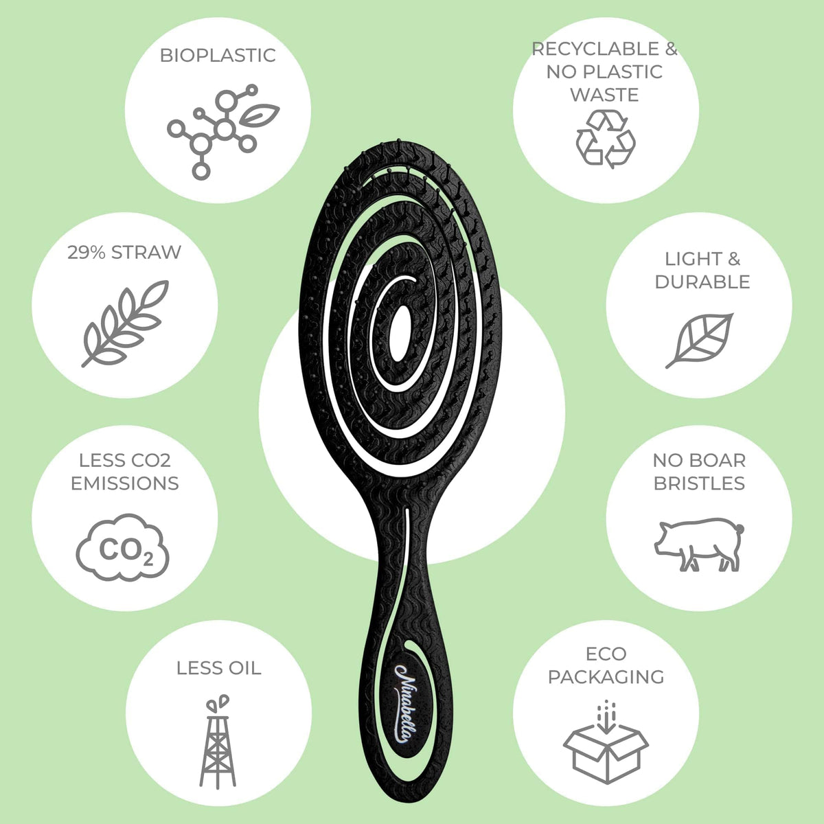 Ninabella Detangling Hair Brush for Women & Men - Does not Pull - Straightening Brushes for Straight & Curly Hair - Unique Spiral Hairbrush - Black