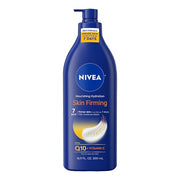 NIVEA Nourishing Hydration Skin Firming Body Lotion is a 72-hour body moisturizer designed for dry to very dry skin. Infused with Q10 and Vitamin C, it deeply hydrates and firms the skin, leaving it smooth and revitalized.