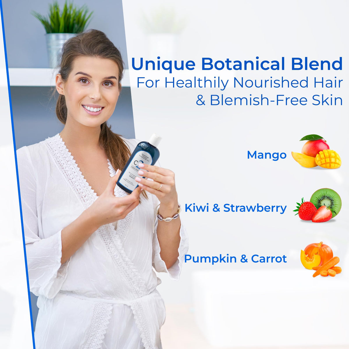 Product Benefit :: Nourishing formula promotes clear skin and healthy hair; expertly formulated by a paramedical esthetician; unique botanical blend for radiant hair; paraben-free formula for whole-body well-being.