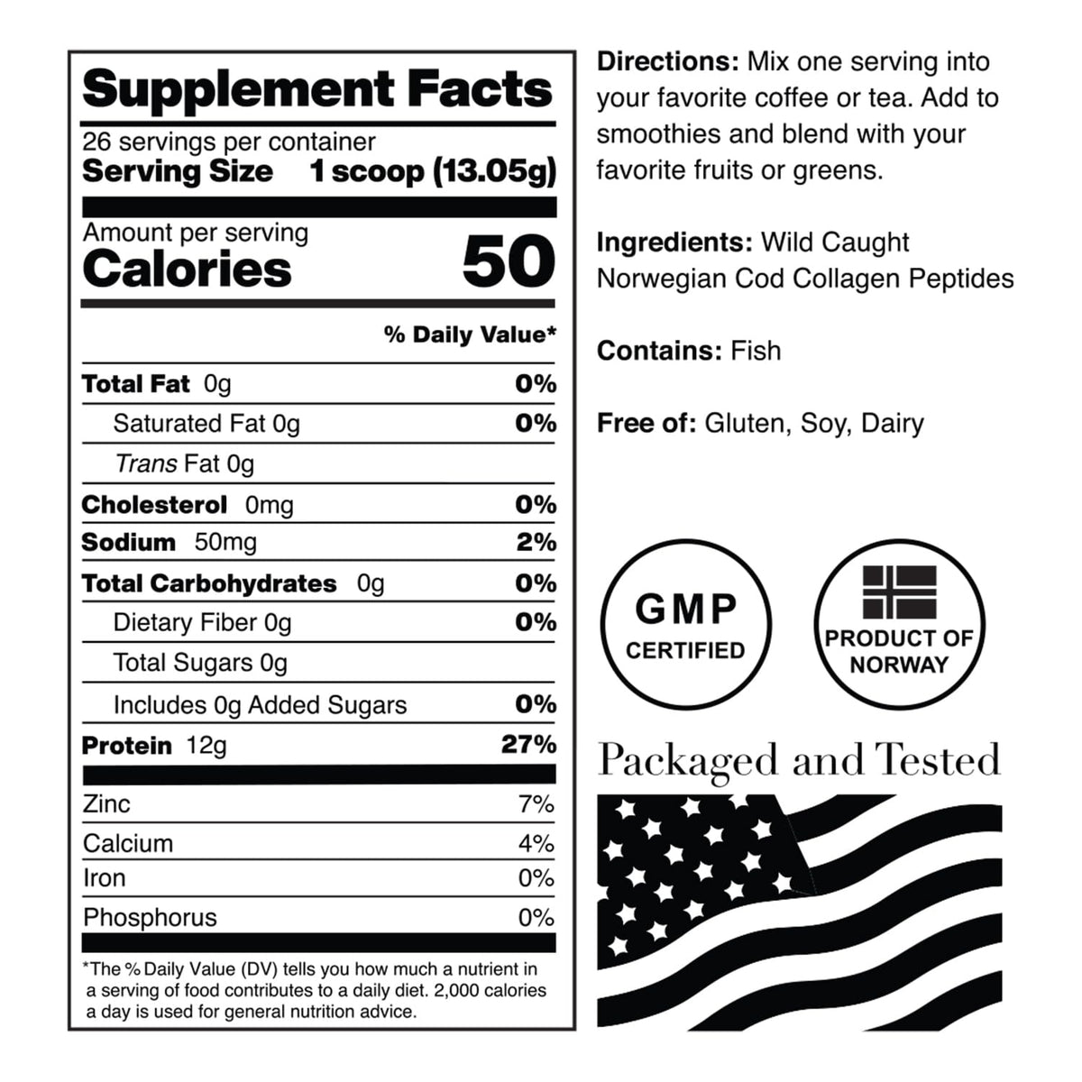 Norcal Marine Collagen - 12oz Marine Collagen Peptides Powder | High Protein, Zero Fat/Sugar/Carb | Skin, Hair, Nail & Joint Health | Low Metals, US GMP Certified