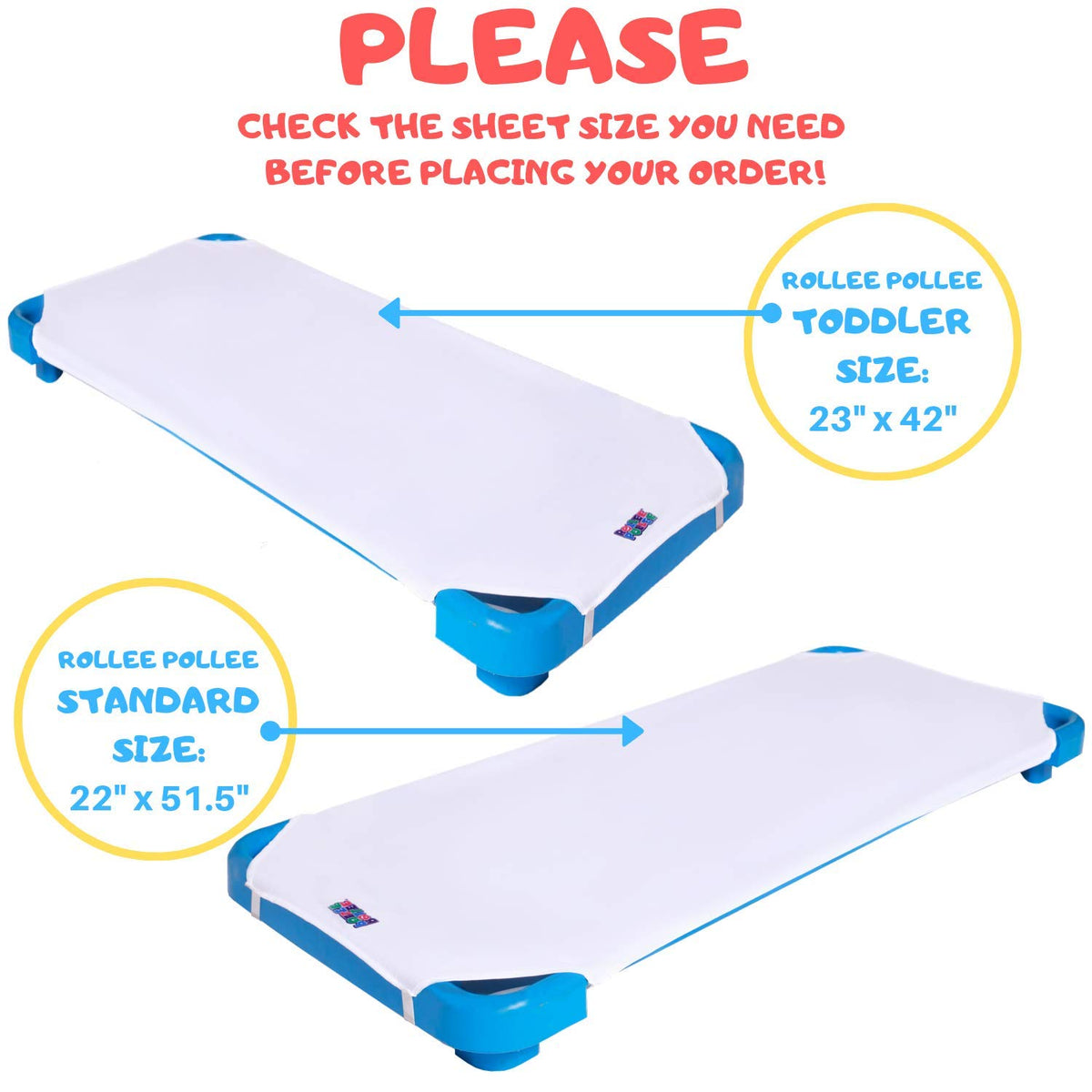 Northwest Rollee Pollee White Microfiber Cot Sheets - Super Soft & Durable with Elastic Loops - Ideal for Preschool & Daycare Naptime Bedding - Toddler Size 23 x 42 6-Pack
