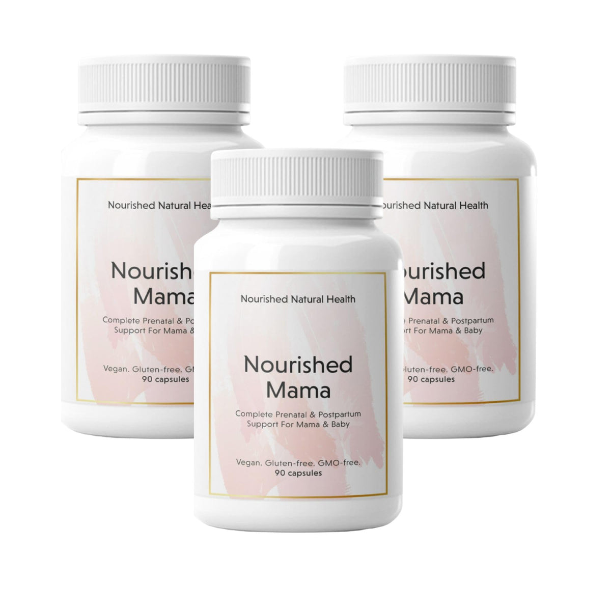 Nourished Mama Prenatal Multi Vitamin is a vegan multivitamin designed to provide comprehensive support for preconception, pregnancy, postpartum, and breastfeeding. This iron-free formula includes Methylated Folate and High Dose Choline to cater to the specific needs of expecting and nursing mothers.